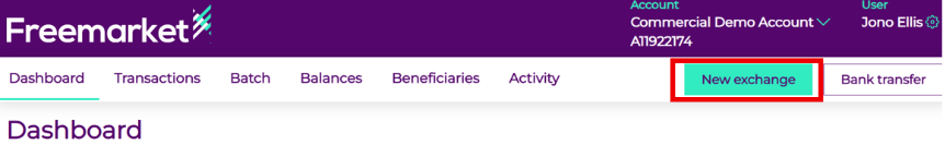 - To execute a standard exchange, go to the main dashboard and select “New Exchange” in the top right-hand corner
