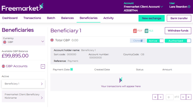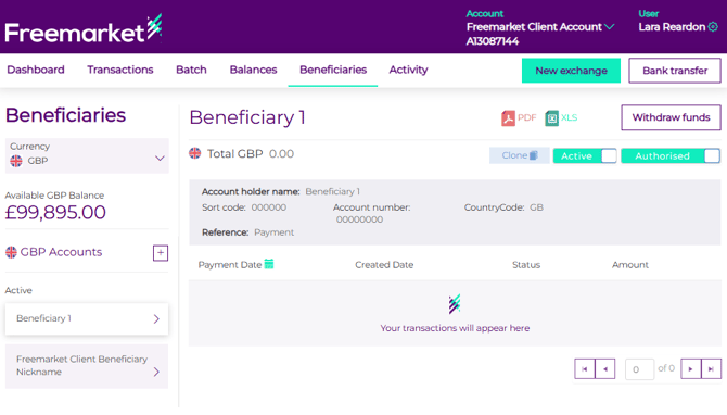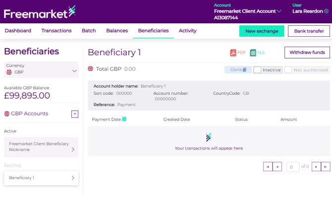 - Log into your Freemarket portal and click on the Beneficiaries tab