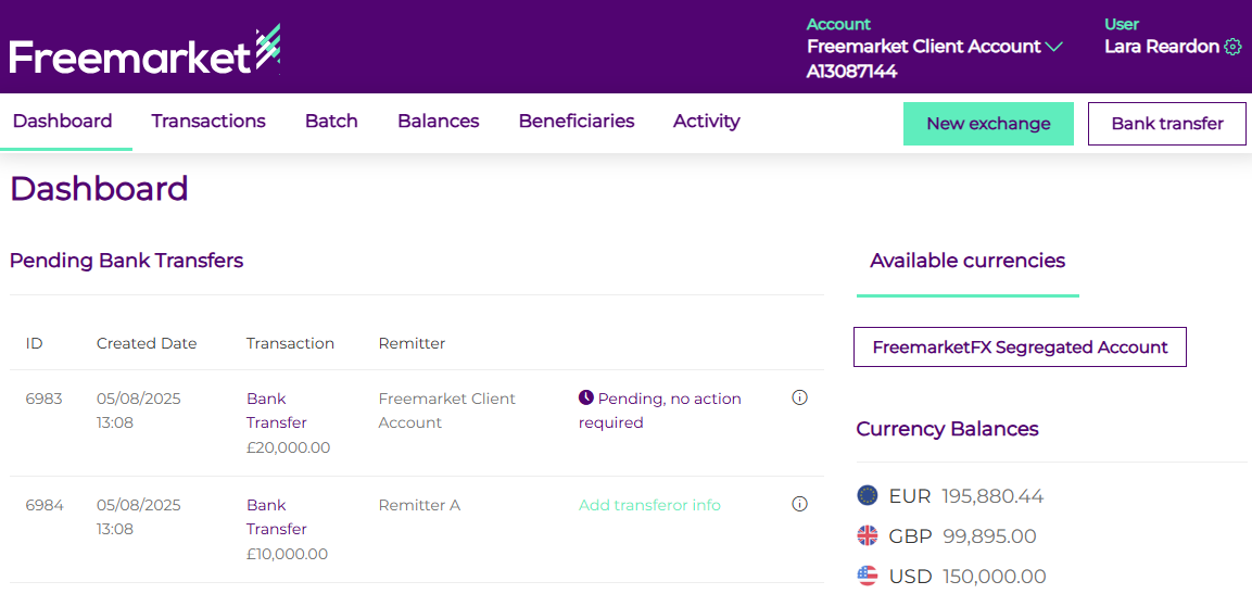 If a bank transfer is showing as pending on your client dashboard, it means Freemarket has received funds intended for your account and is currently processing them. In some cases, we may require additional details before the funds can be credited.